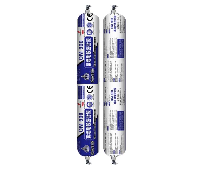 Continuously squeeze and fill the interface with OM900 one-component curtain wall weatherproof sealant. Press the sealant onto the gasket material and interface surface with appropriate force, and the finishing process must be completed in one go after the injection of the sealant is completed and before the adhesive surface has peeled. It is recommended to use convex or suitable tools to smooth the adhesive surface, and soap and water cannot be used as auxiliary materials for trimming. After finishing, immediately remove the covering tape. On the glass assembly, the sealant injected at the bottom interface needs to be trimmed into an inclined surface to prevent water accumulation. In outdoor temperatures as low as -25 ℃, the ○M900 one-component weatherproof sealant for curtain walls can still be extruded and applied to a clean, dry, and frost free surface.